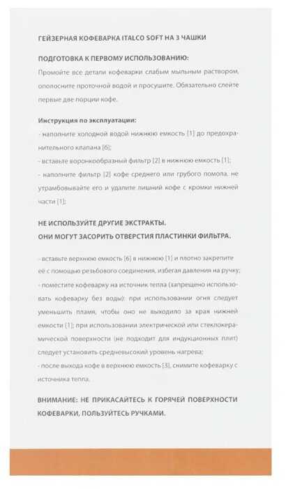 - Объем готового кофе 200-280 мл на 2 большие или 6 маленьких чашек.