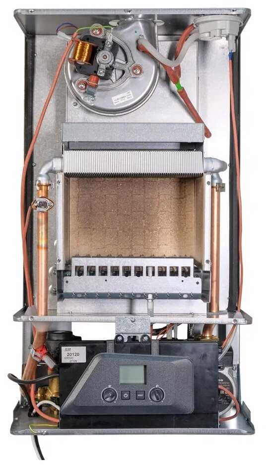 - Медный теплообменник обеспечивает быстрый нагрев воды и долговечность.