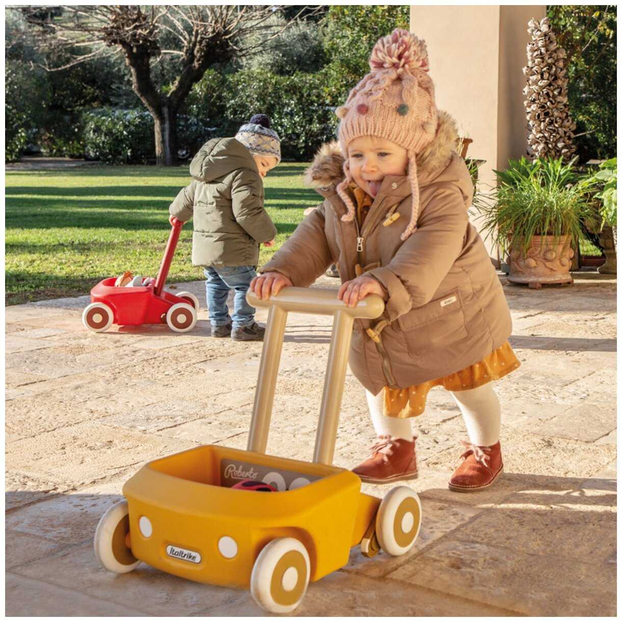 - + Отличная каталка. Не убегает от малыша как большинство. Увесистая, но при этом ребенку толкать легко