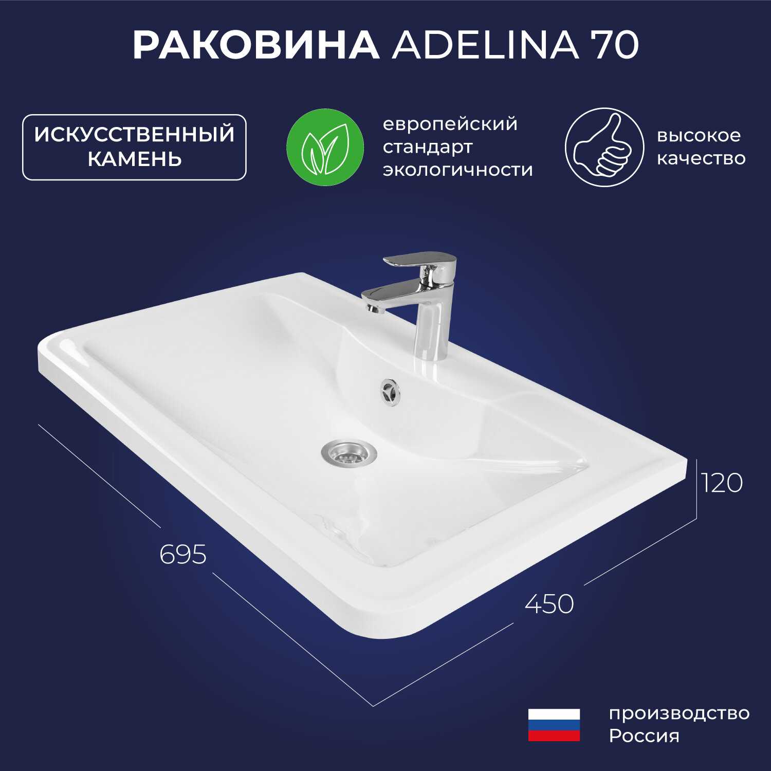- + Красивая аккуратная раковина, углы закруглены, для маленького помещения удачное решение