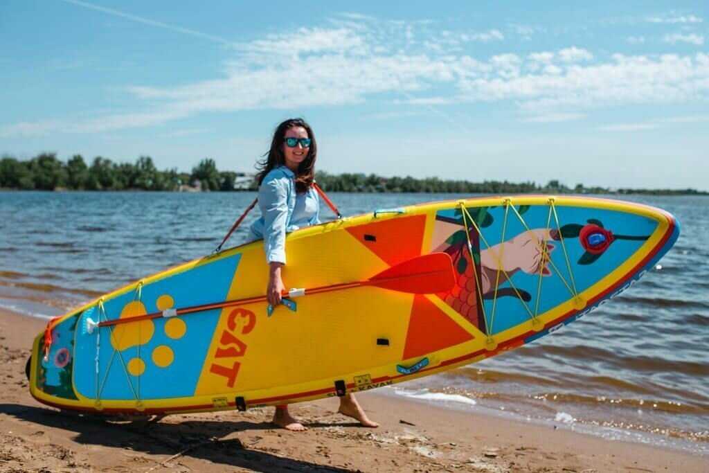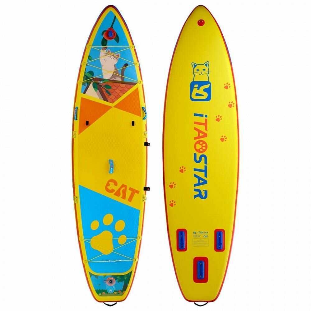 - + Моим подарком на 8ое Марта был сапборд itaostar cat. Одиннадцатидюймовая красавица-доска, могу смело назвать ее - семейной! Широкая, яркая, с привлекательным изображением котика, имеет две места крепления багажа.
