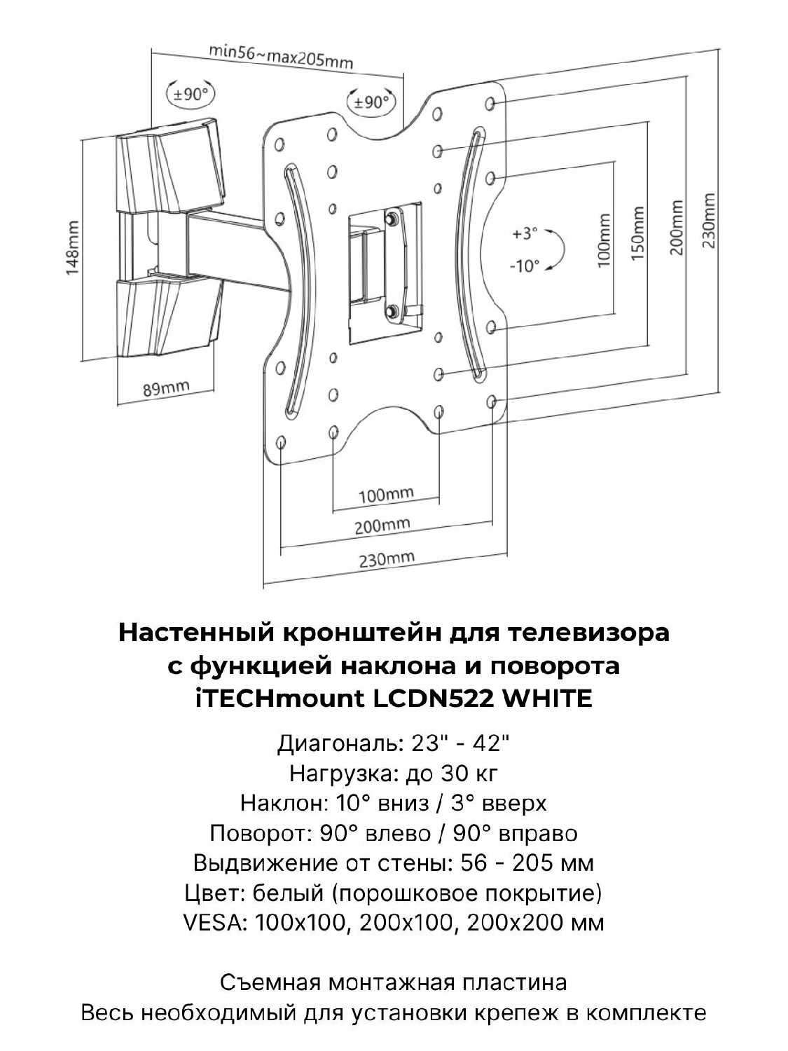 Отзывы о Настенный кронштейн для телевизора iTECHmount LCDN522