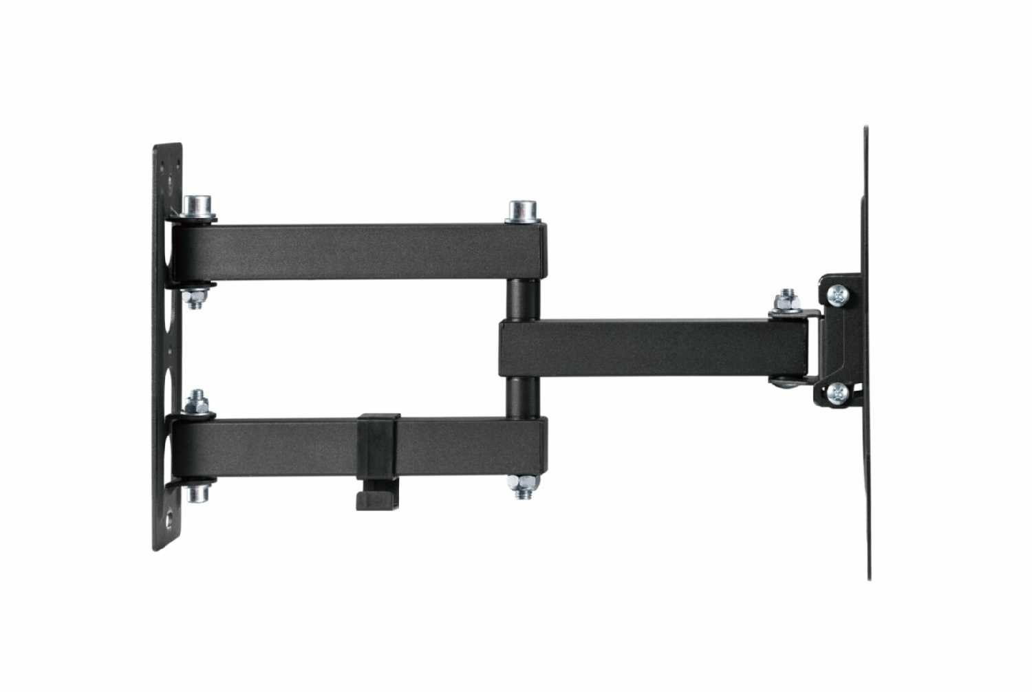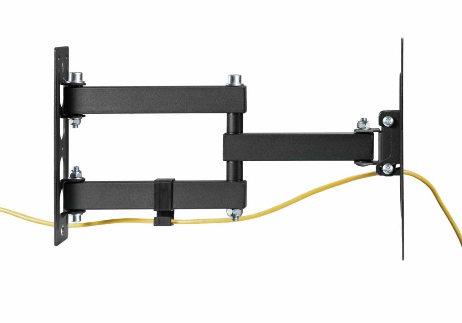 - Шарниры с фиксацией на болтах позволяют плавно менять наклон (до -12°), поворот (±180°) и выдвижение от стены (максимальное расстояние — 35 см от центра экрана).