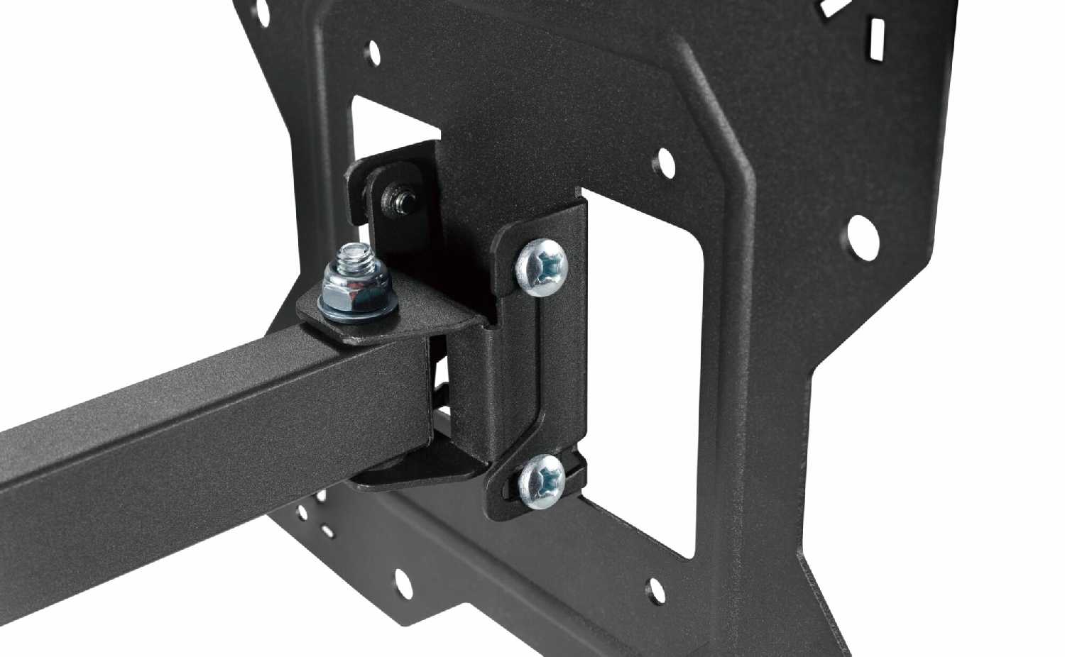- Рамка для крепления к TV усилена болтами большого диаметра, что обеспечивает стабильность даже при активной регулировке положения.