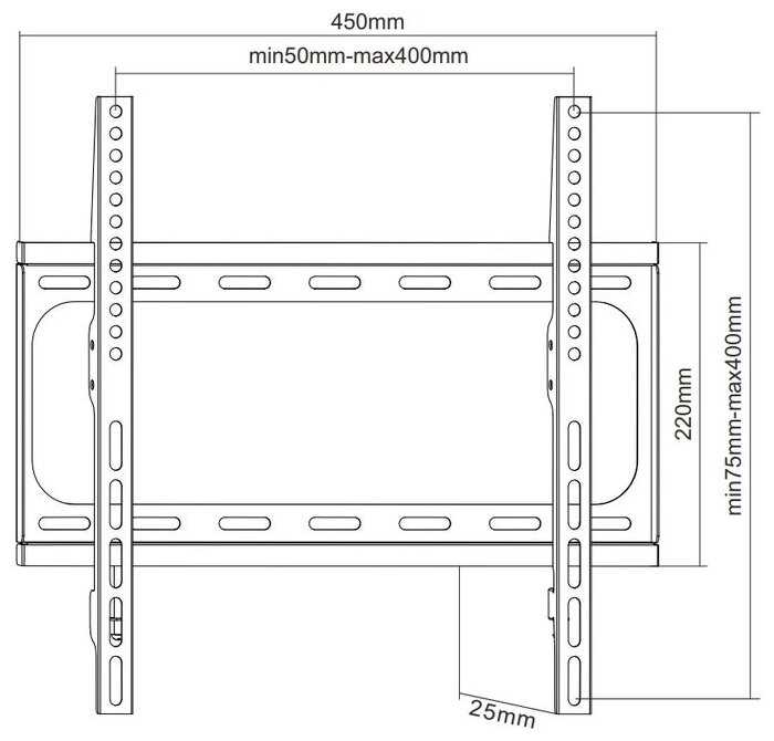 Прочный, крепко сделанный кронштейн, подойдет для моделей телевизоров с диагональю до 55 дюймов. Весь необходимый крепеж в комплекте с кронштейном. Удерживает заявленный вес.