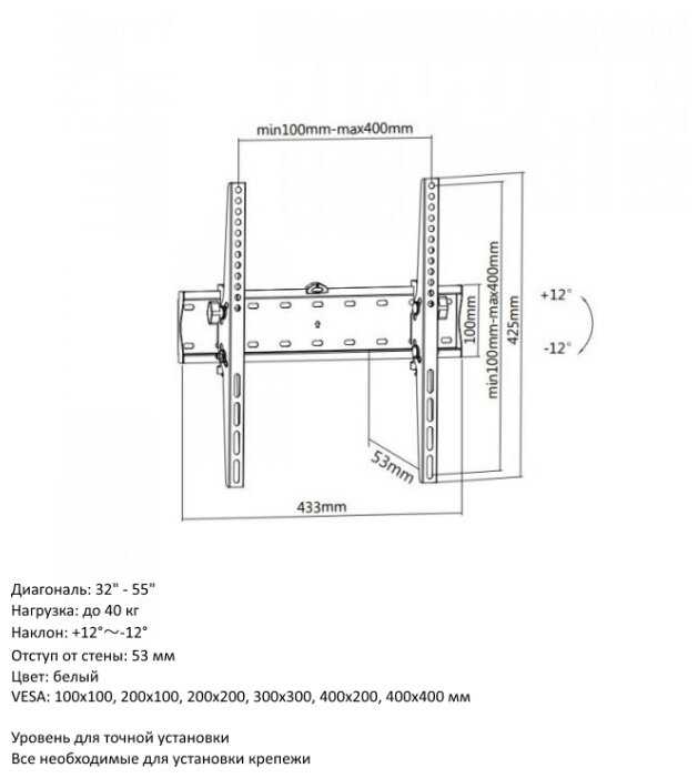 - Держит телевизоры до 12 кг и 55 дюймов без люфта или провисания.