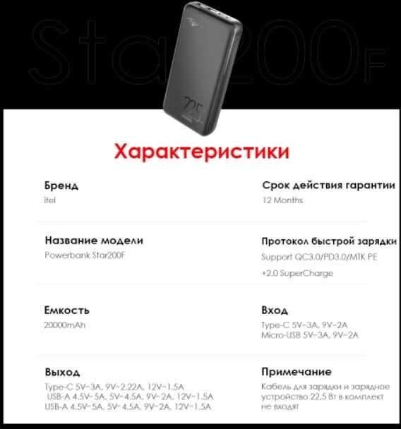 4 отзывов пользователей o Itel Star 200F (20000mAh 5A)