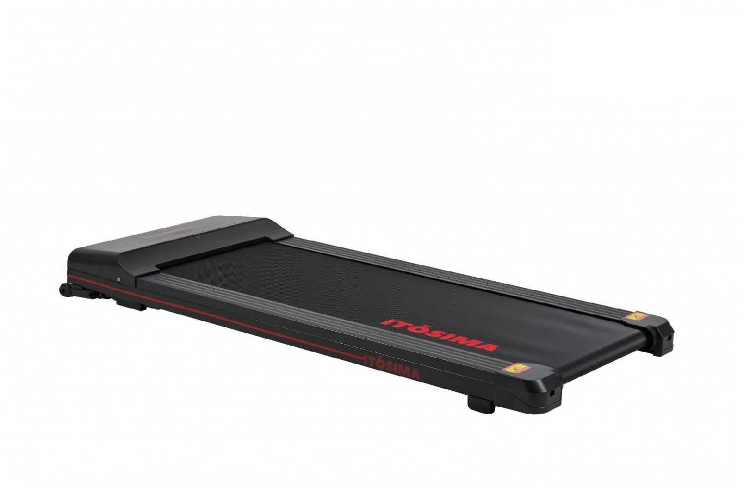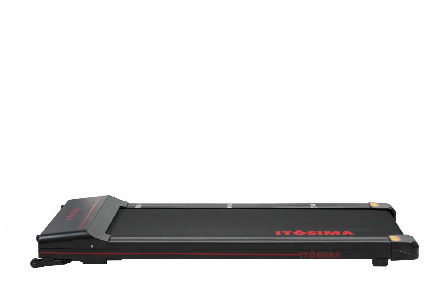 2. Действительно компактная. Места не занимает вообще. Можно закатить под кровать или поставить за дверь. В торце передней части, там, где мотор, есть специальные ножки. То есть дорожка стоит не на корпусе, а на этих ножках.