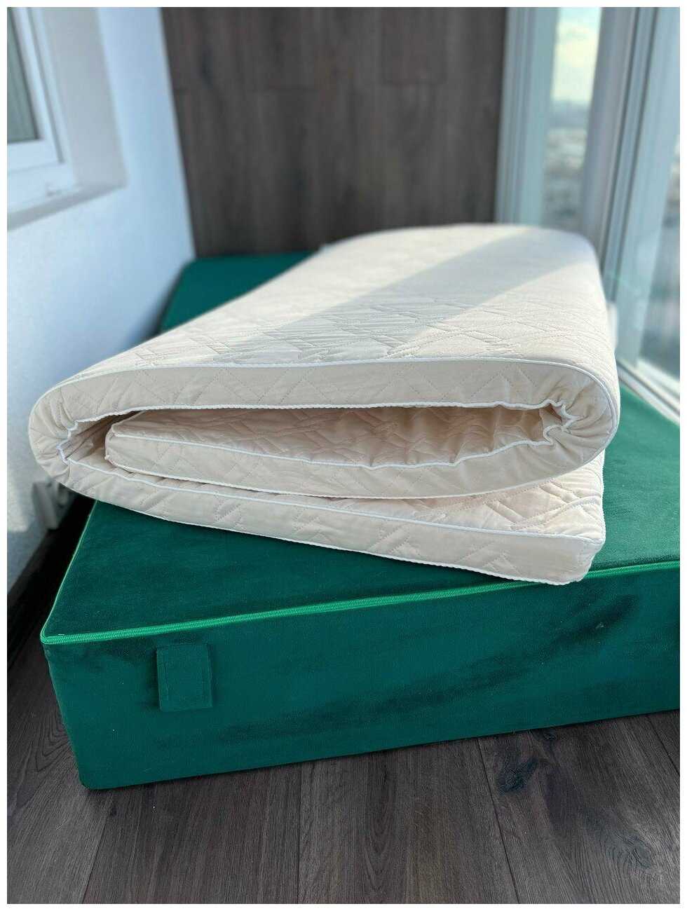 - Топпер компенсирует неровности диванов (выпирающие пружины, выемки), обеспечивая равномерную поддержку позвоночника.