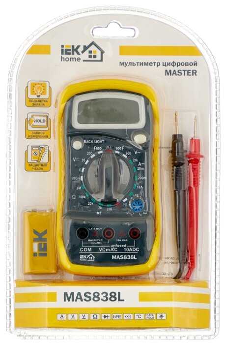 Характеристики:- вид прибора: цифровой измерение переменного напряжения измерение постоянного напряжения измерение силы постоянного тока измерение сопротивления измерение работоспособности диодов и транзисторов выявление повреждения проводки и соединения