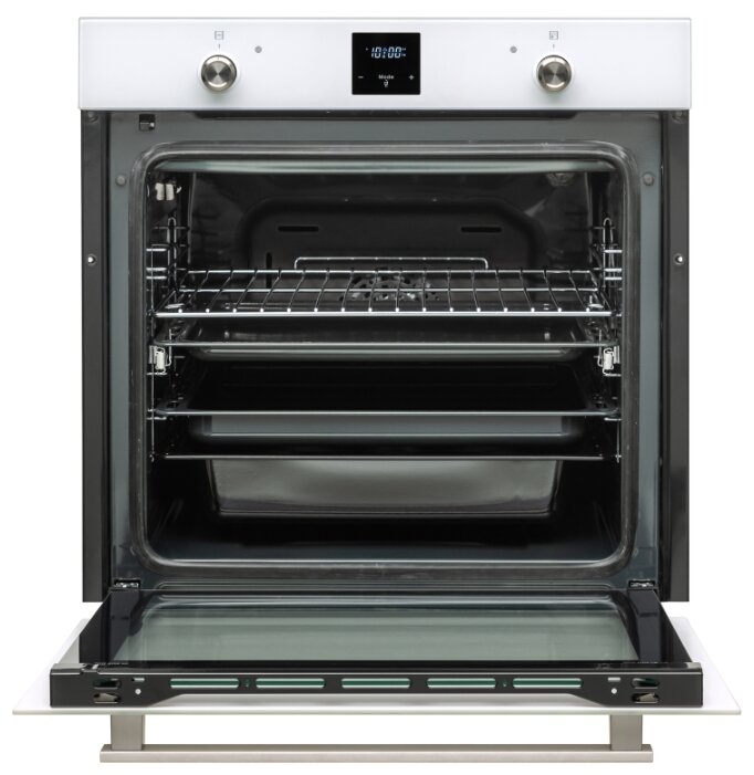 В первую очередь очень понравился внешний вид. Фасад в белом стекле идеально подошёл под мою кухню. Внутри супер большой полезный объём. Задняя стенка с системой очистки. Есть телескопическая направляющая и это очень удобно. Хорошая комплектация. На двери три стекла , внешнее практически не нагревается. Можно запрограммировать время работы и это очень удобно. Рекомендую.