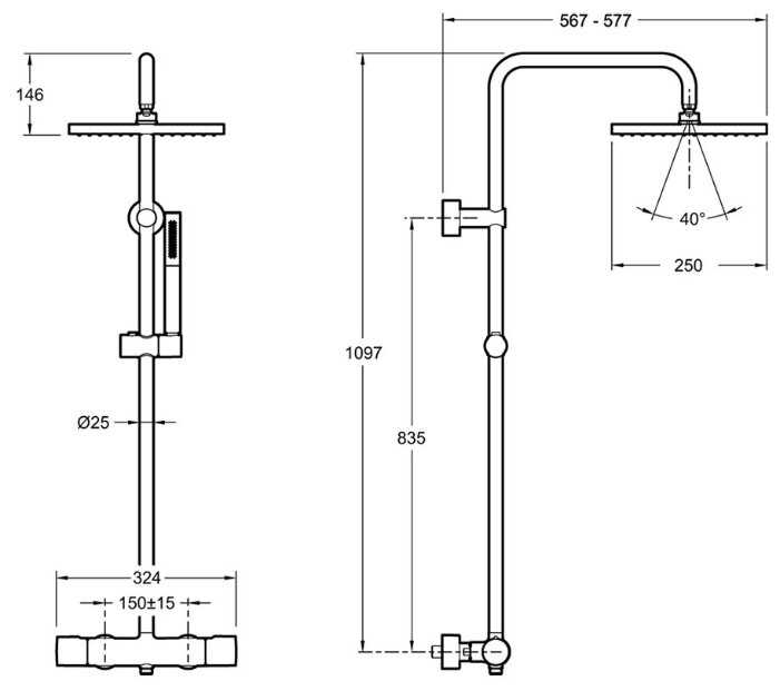 | Комплектация : | верхний душ, держатель лейки, душевая стойка, кронштейн для верхнего душа, лейка, ручной душ, смеситель, шланг |