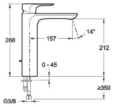 - высота излива: 212 мм.