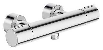 У родителей стоит такой смеситель уже несколько лет, поэтому я знал что он дорогой, но точно оправдает свою стоимость долголетием. В качестве запорного клапана в нем стоит термостатический картридж, корпус сделан из латуни и сверху соответственно красивый блестящий хром. Крепится к стене на два монтажных отверстия и вся работа занимает пол часа, час максимум. По бокам есть два вентиля для настройки температурного режима воды. Максимально лаконичный в современном стиле смеситель.
