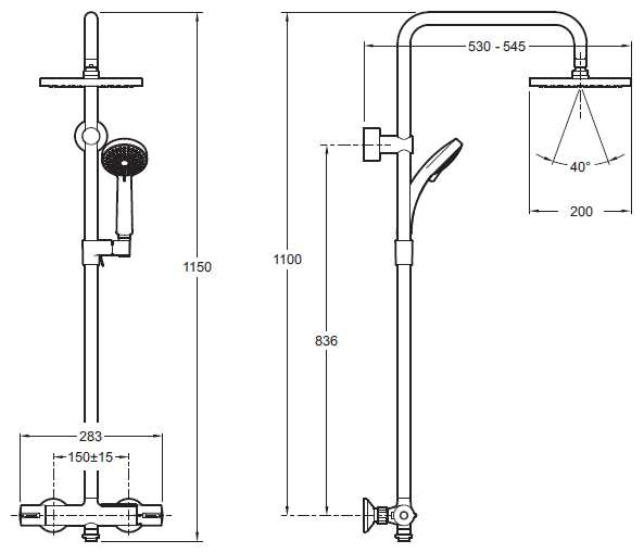 | Высота стойки для душа : | 1150 мм |