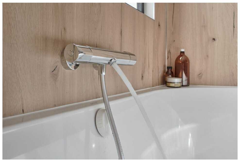 Классный и современный смеситель с крытм термостатическим картриджем. На стене такой смеситель смотрится очень необычно, поэтому я решила заказать себе такой. Изначально увидела его у своей подруги, он такой аккуратный и работает отлаженно. В конструкции смесителя есть аэратор, который предназначен для равномерного разделения потока воды на небольшие струйки. Пользоваться смесителем удобно, он прекрасно смотрится в ванной комнате, отлично подошел под дизайн.