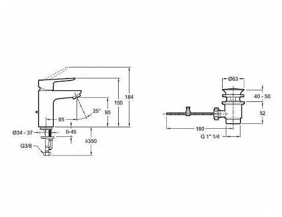 Характеристи Jacob Delafon Oscar E29842-CP, рычажный
