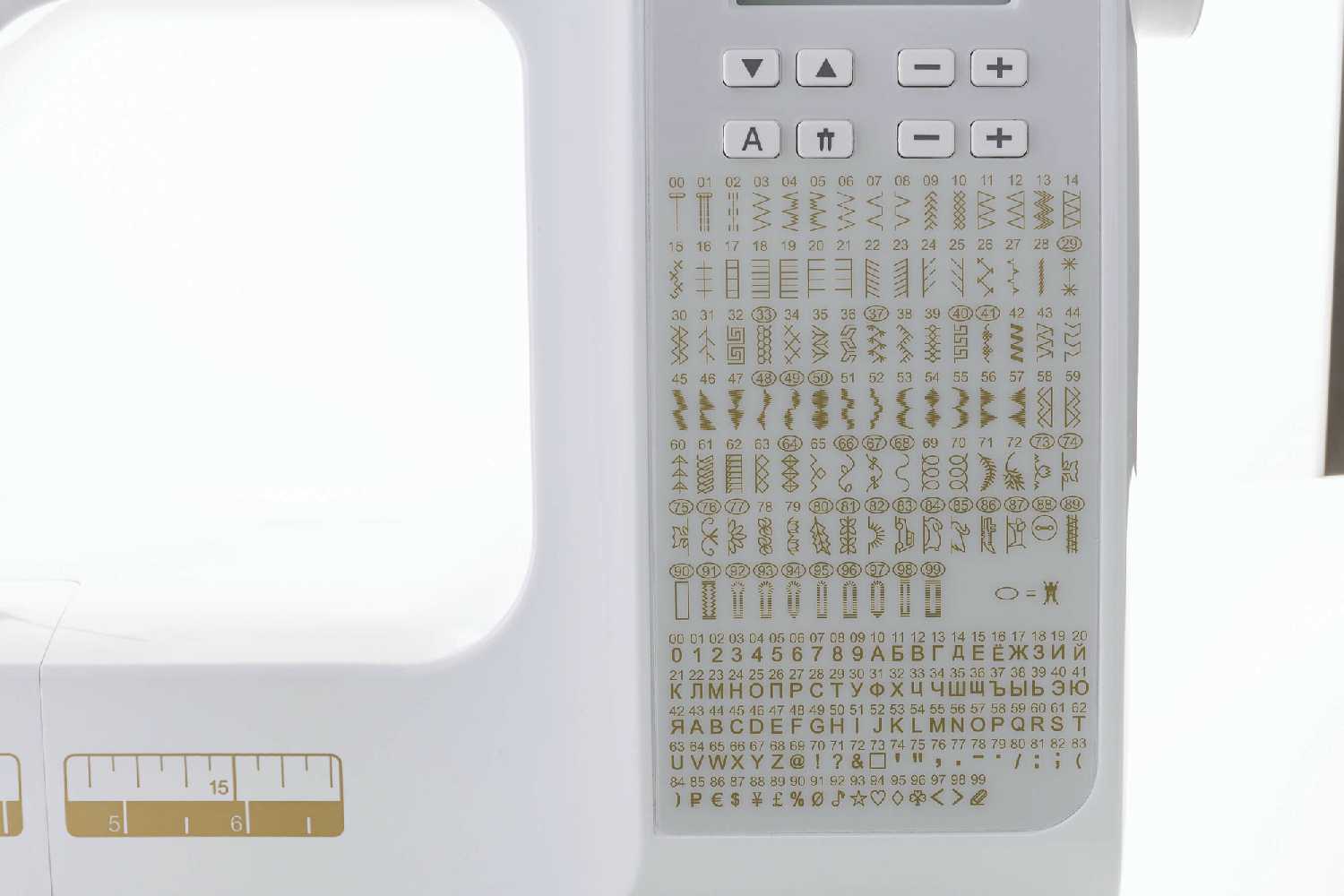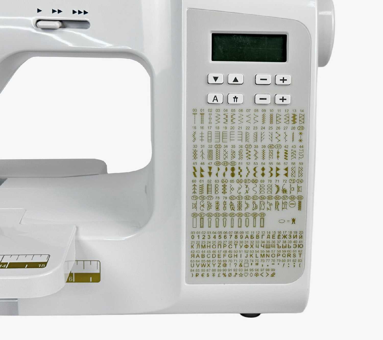 - ЖК-дисплей отображает тип строчки, длину/ширину стежка и коды ошибок, упрощая диагностику проблем.