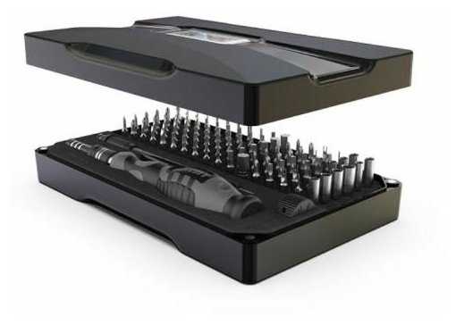 - + Большое количество бит, наличие магнитного кольца, пинцета и гибкого удлинителя