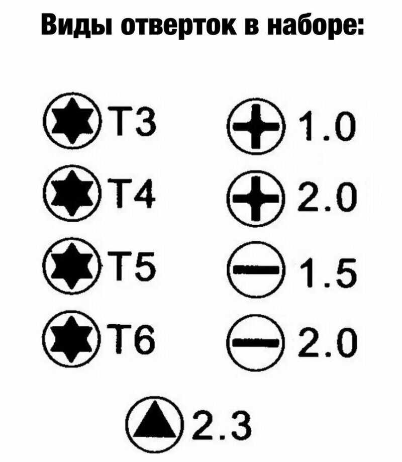 Инструменты в комплекте : | отвёртки, отвёртки для точных работ |