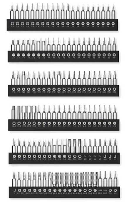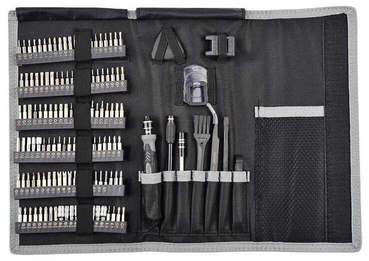 - + Количество бит поражает, пока не встретил прибора, к которому не нашел бы подходящей. Также порадовали дополнительные инструменты для разбора, очень выручают