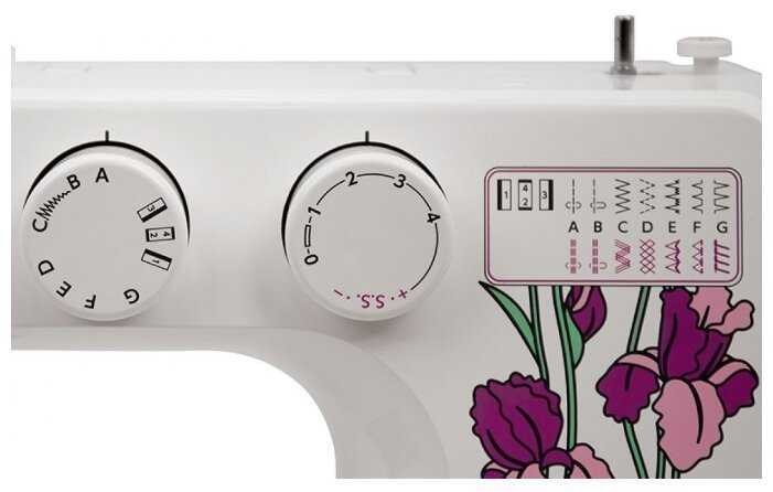 Оснащена нитевдевателем, рукавной платформой. Легко регулировать длину и ширину строчки. И разновидностей строчек много. Петля полуавтомат. И освещение хорошее.