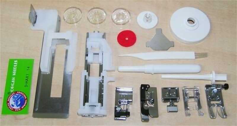 Стандартная комплектация включает набор игл, несколько лапок (в том числе для петель и зигзага), съёмный держатель для катушек, распарыватель и чехол для хранения. Пользователи ценят органайзер для мелочей, предотвращающий потерю игл. Съёмный инструментальный ящик упрощает обработку рукавов, а дополнительный держатель нитей решает проблему соскальзывания катушек при быстром шитье. Однако мягкий чехол не обеспечивает жёсткой защиты при транспортировке.