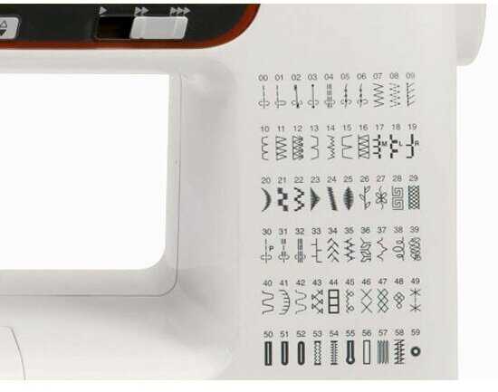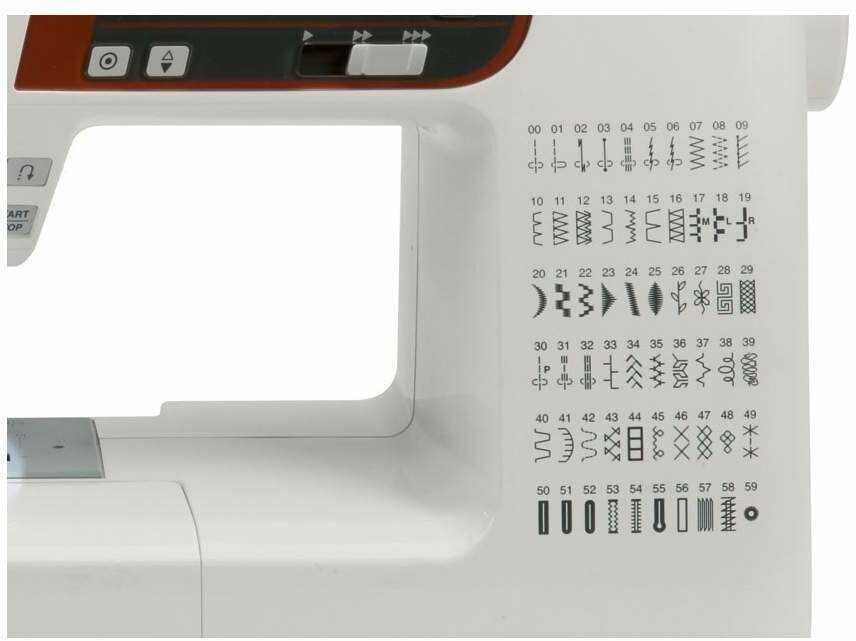 - Интуитивное меню и подробная инструкция ускоряют освоение 59 основных и 33 декоративных строчек, включая оверлочную.