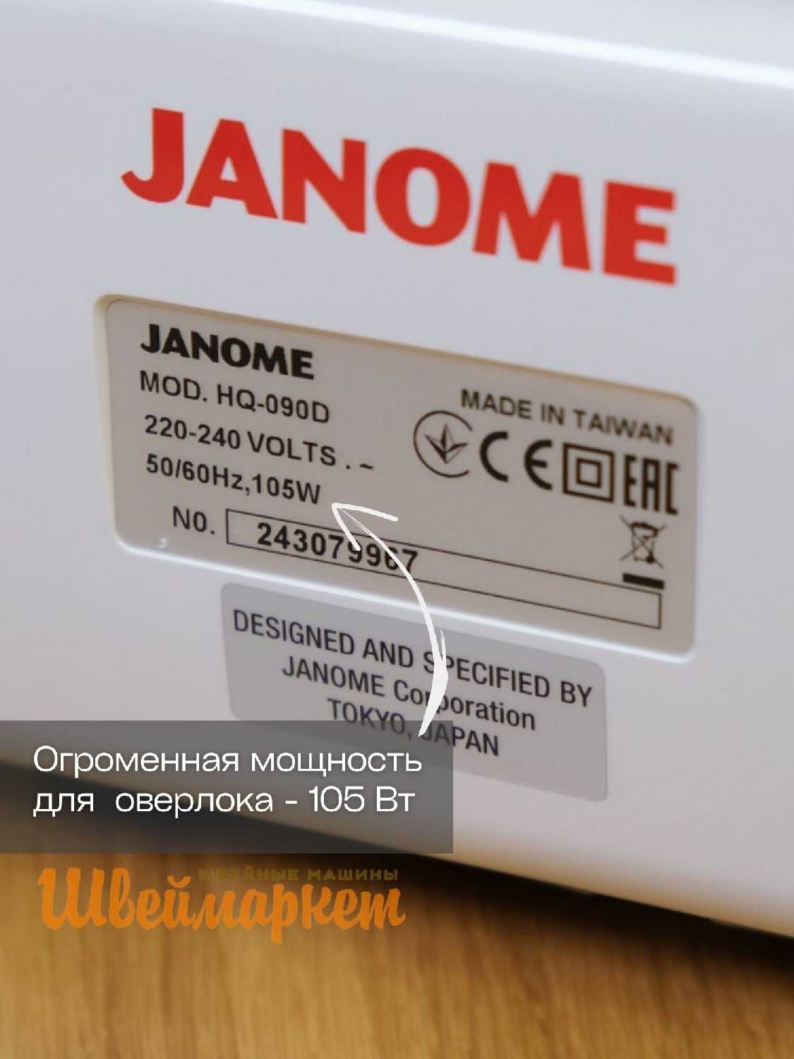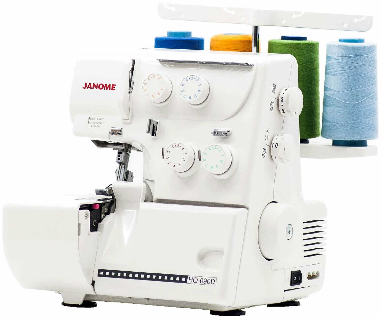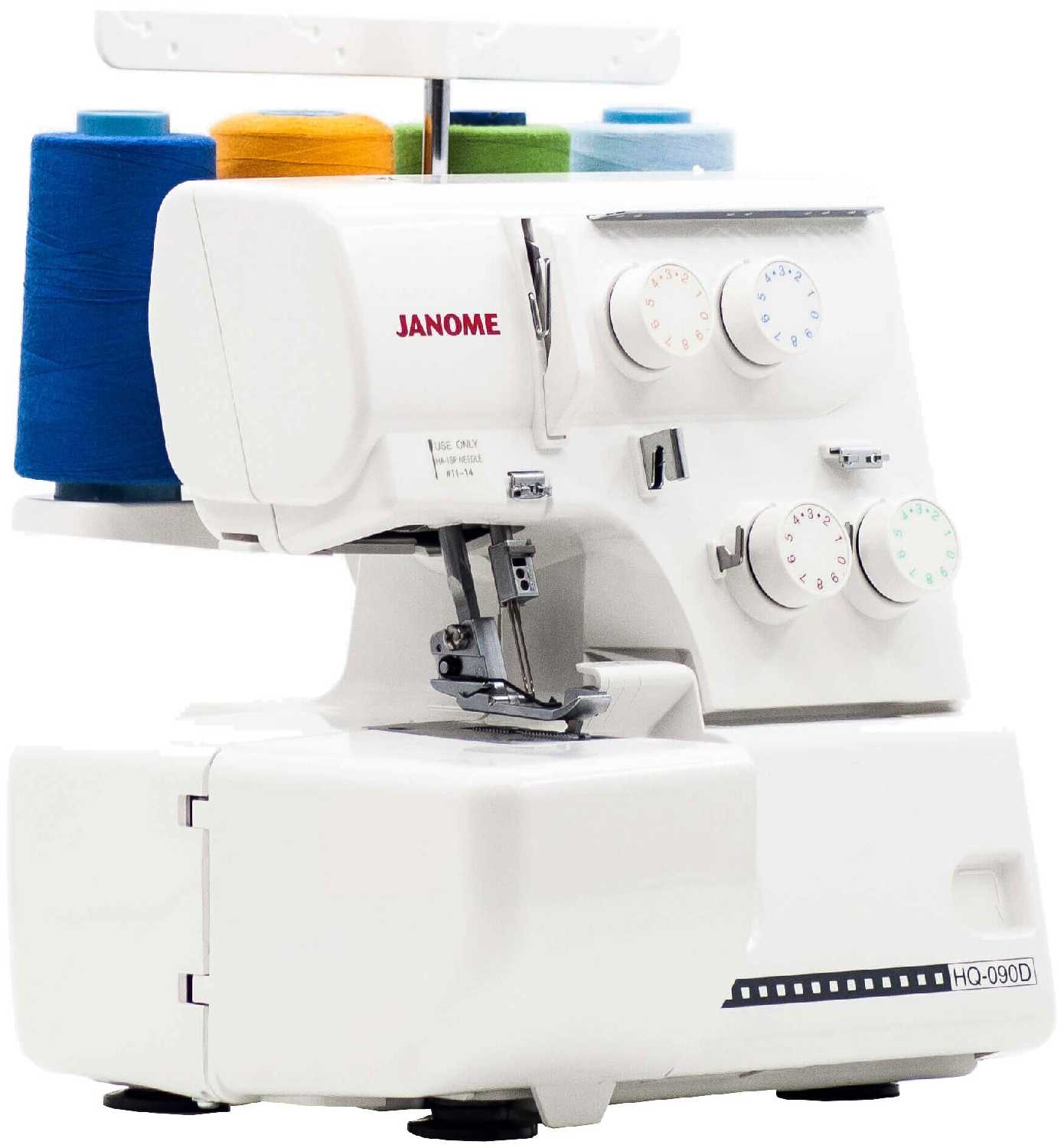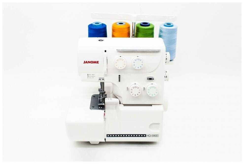 - + Оверлок Janome HQ-090D качественно сделан, удобная система регулировки натяжения нитей, есть возможность поднятия ножа. Справляется с различной толщиной ткани,от трикотажа до джинсы, не затягивает органзу. Прост в заправке нитей, все показано разным цветом.