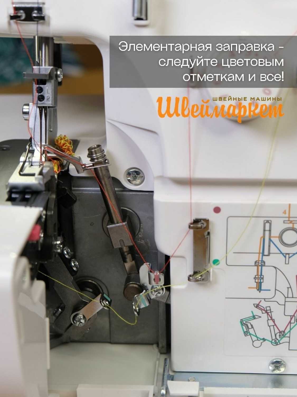 В комплекте: лапка для оверлока стандартная, инструкция по эксплуатации, отвертки большая и малая, пинцет, набор игл - - По словам мамы, сложно заправлять нити