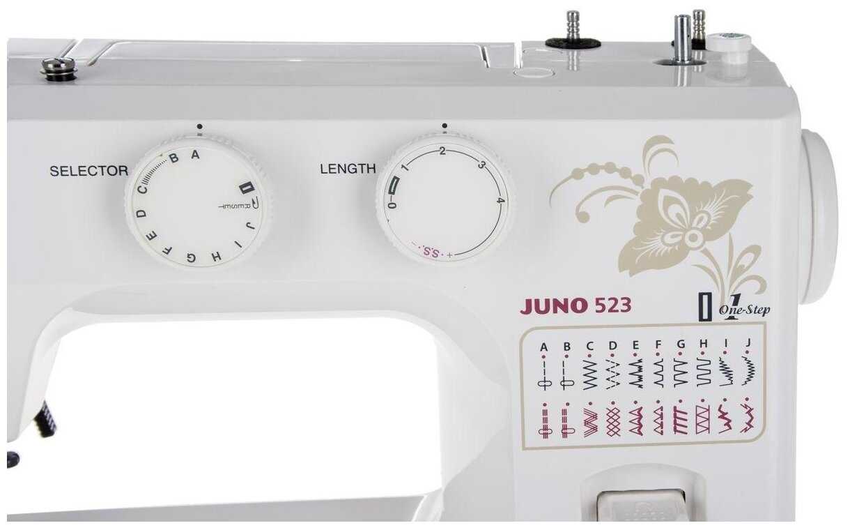 - + Превосходное качество строчек на швейной машине Jаnome Juno 507. Швейная машина Janome Juno 507 хорошо справляется со всеми видами тканей, будь это шелковое изделие или плотная кожа.