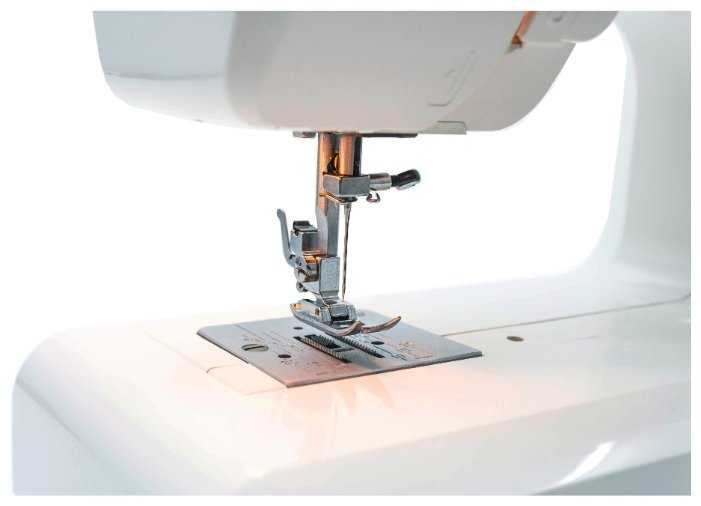 Легкая, удобная, простая в эксплуатации. Строчки ровные. Есть все, что необходимо новичку в шитье