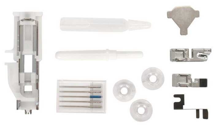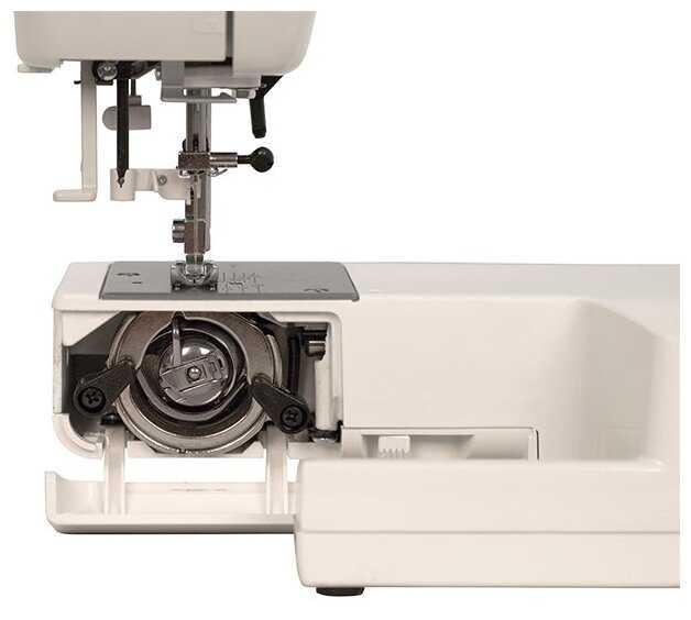 - + Нитевдеватель, строчки, петля автомат и даже жёсткий чехол.