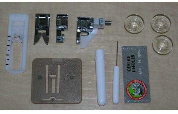 - - По сравнению с предыдущей нашей швейной машиной (Janome Gold) - эта более упрощена и облегчена. Нитевдевателя нет, подсветка - светодиод на проводе, коротковаты держатели для катушек с нитками (их два). Педаль управления меньше и гораздо легче, чем была раньше.