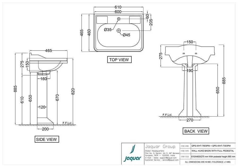 Лучшие цены сегодня на Jaquar Пьедестал для раковины (QPS-WHT-7303PM)