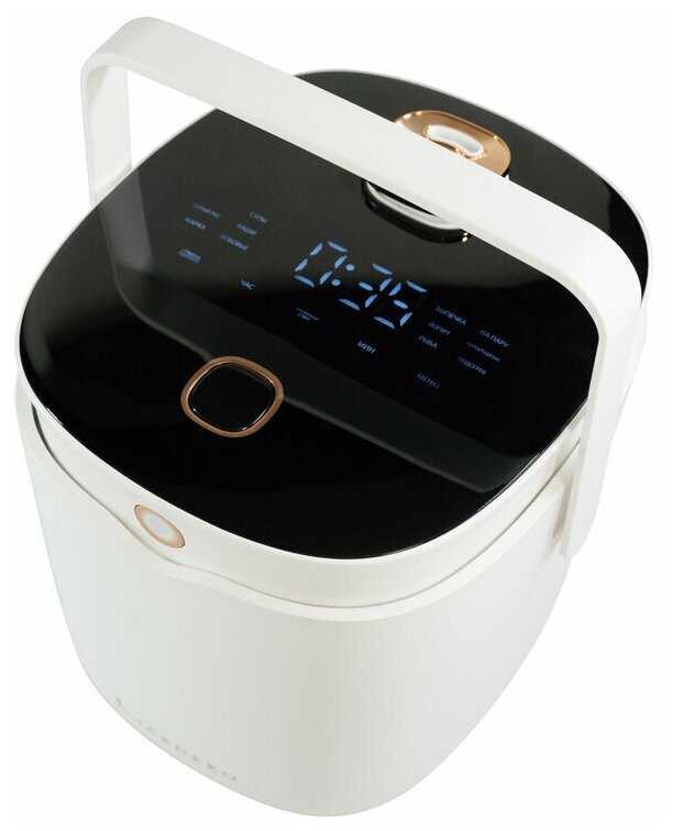 - + Маленькая, места много не занимает. Дизайн приятный, удобно таскать за ручку. Опробовала режим крупы, варка на пару, бурый рис, выпечка и тушение, в целом работает как надо. Для бурого риса надо добавлять побольше воды, пропорция где-то 1:5 рис к воде. Иначе за 90 минут вода выкипает и рис может пригореть.