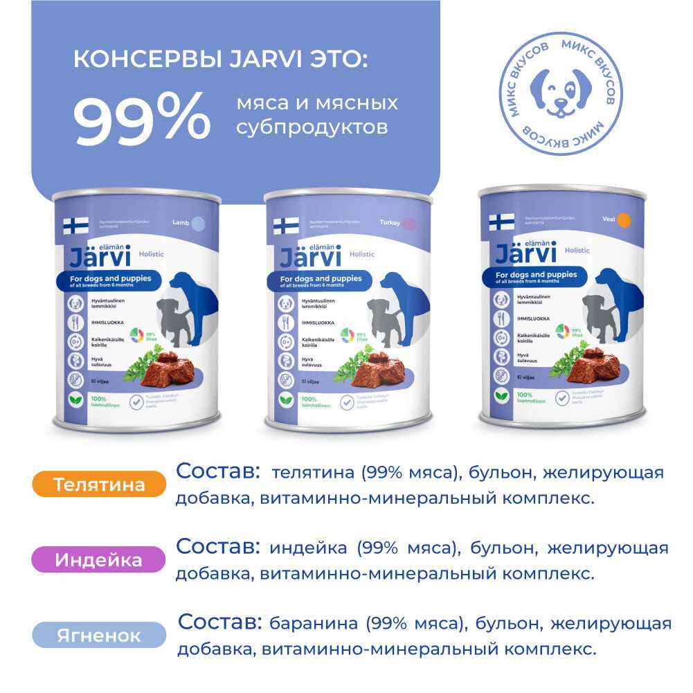 Отзывы о Консервы Jarvi Полнорационные консервы для щенков и собак всех пород (комбо-набор)