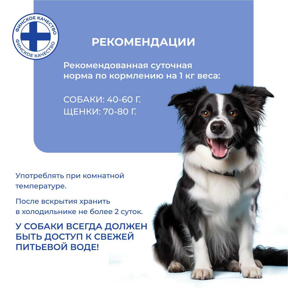 - Подходит для собак с чувствительным пищеварением, заменяя другие корма без переходных проблем.