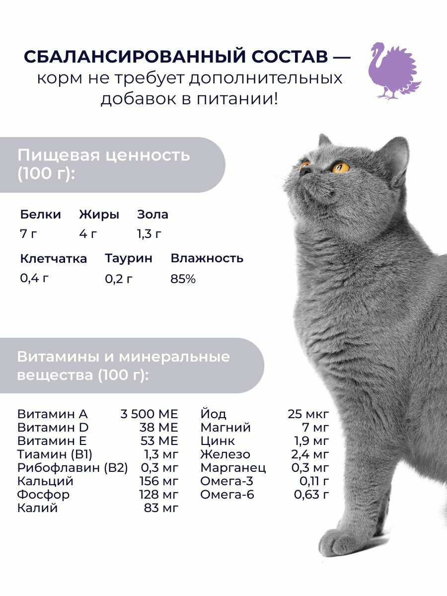 Мой кот - настоящий привереда, но этот корм он ест с удовольствием каждый раз. Состав радует - 40% мяса индейки, без лишней химии. Беру уже больше года, и всегда приятно видеть, как он радостно подбегает к миске. Видно, что корм ему реально нравится.