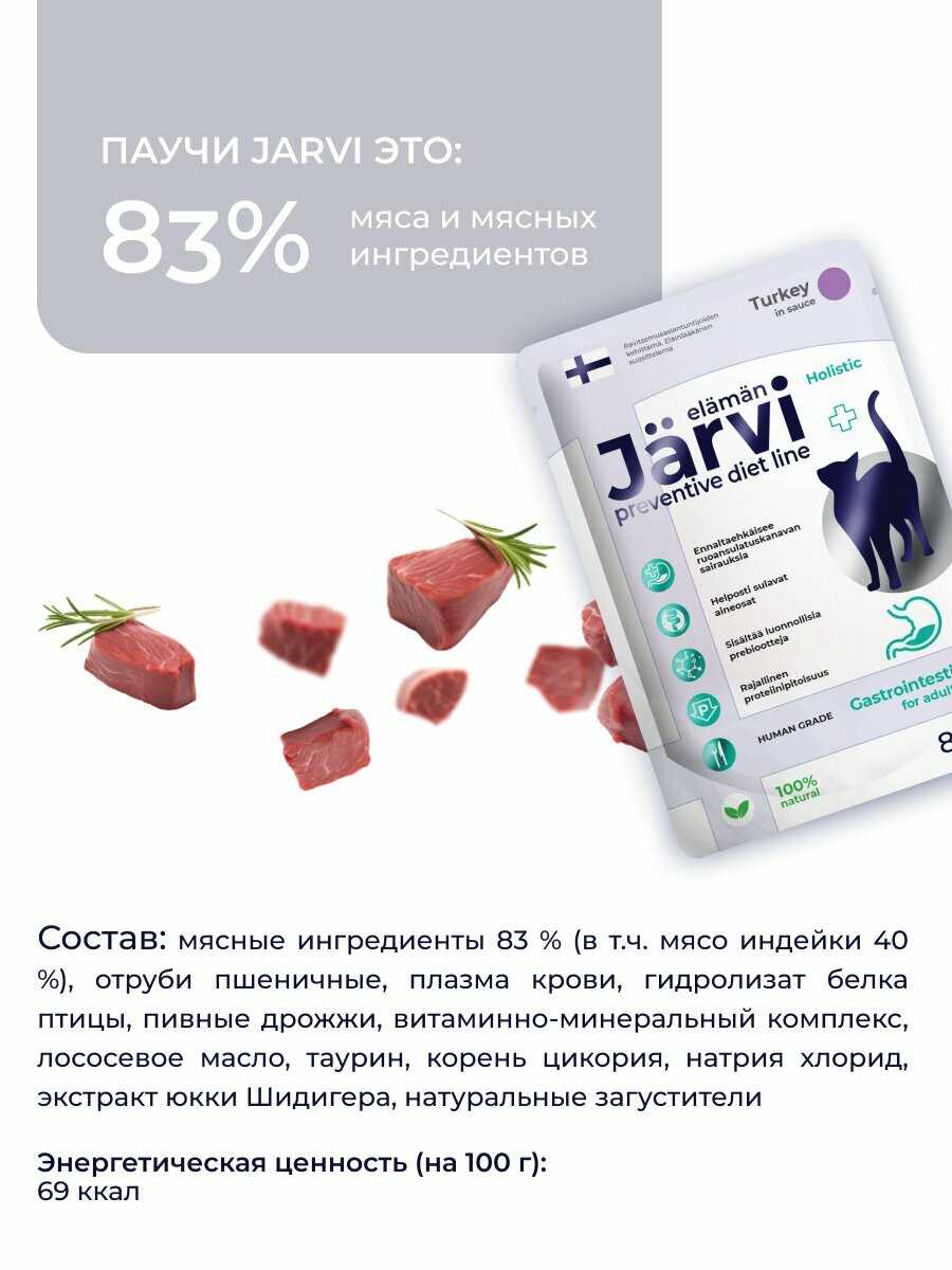 25 отзывов пользователей o Jarvi Preventive diet line Gastrointestinal для кошек (соус) Индейка