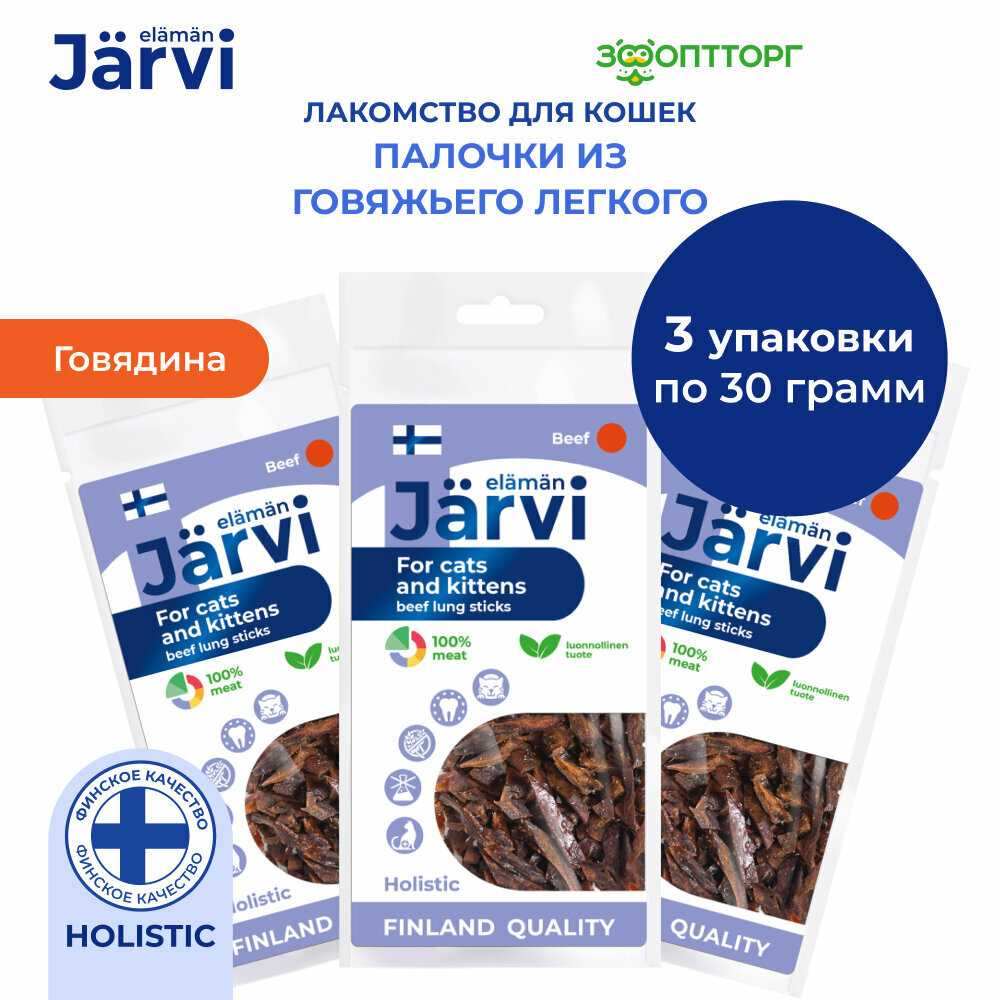 16 отзывов пользователей o Jarvi Вяленое лакомство палочки из говяжьего легкого (3 упаковки по 30 г)