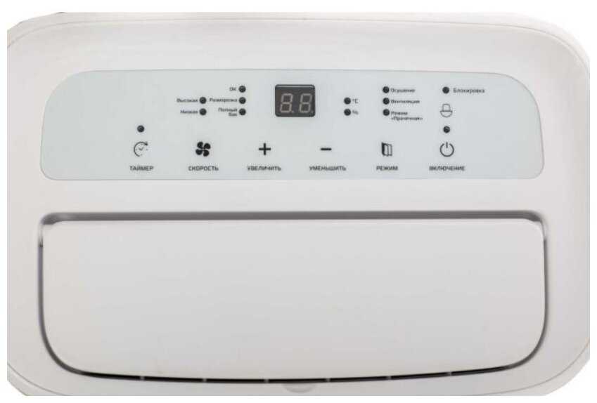 Дополнительные функции : | автоматическое размораживание, автоотключение при заполнении ёмкости конденсатом, регулировка скорости вентилятора, режим сушки белья, установка времени включения, установка времени отключения |
