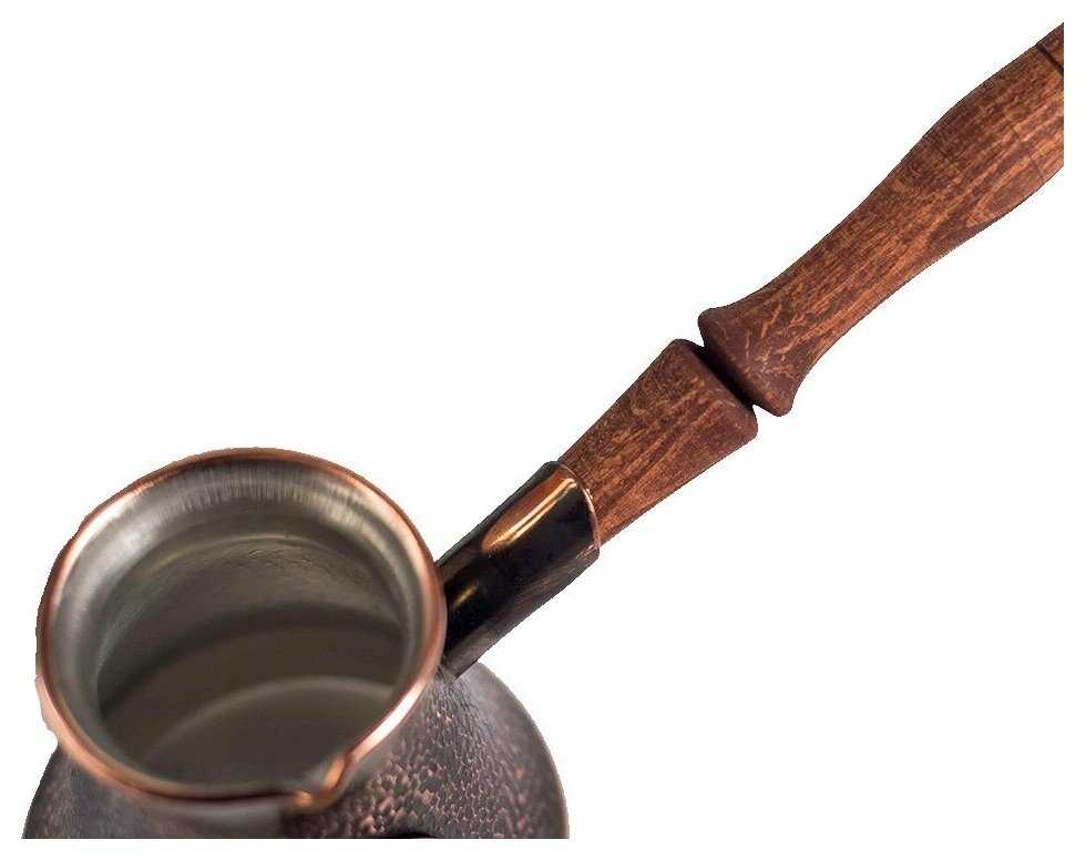 - + Турка полностью соответствует фотографии Продавца. Все сделано на совесть. Удобная ручка плотно сидит в гнезде, покрытие внутренней поверхности турки оловом выполнено сплошным, без пропусков, рисок или задиров. Наружная поверхность турки чистая, без каких либо дефектов. К турке прилагается небольшая инструкция по правилам обращения с ней.