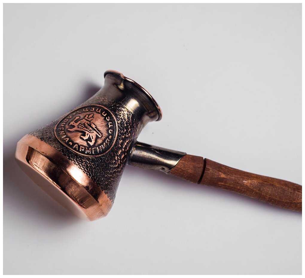 - + Оптимальный размер, в меру вес, медь, оптимальная ширина горлышка, ручная работа. Получается вкусный кофе.