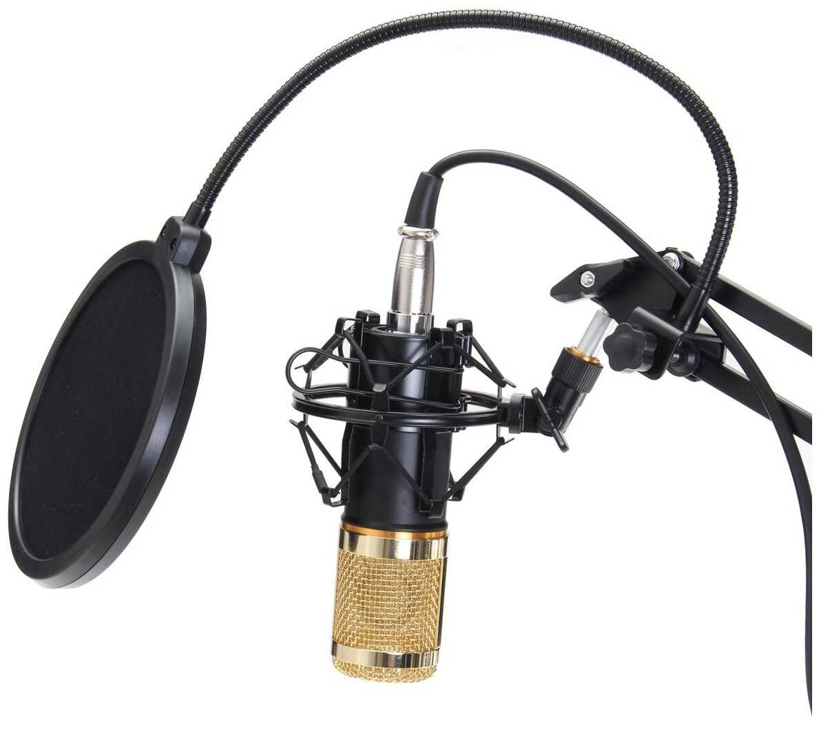- Поп-фильтр из комплекта снижает "взрывные" согласные, улучшая разборчивость речи.