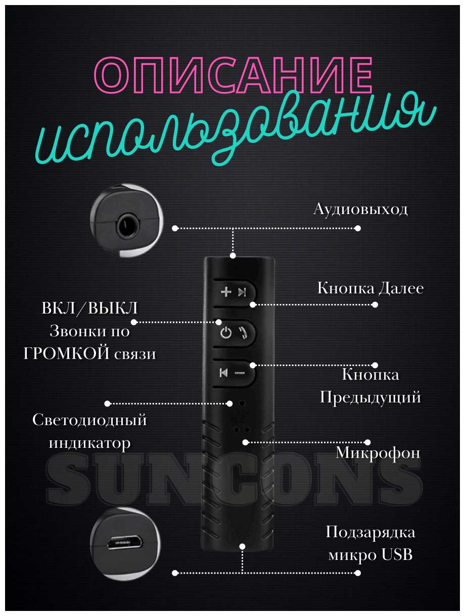 - + Компактный и не дорогой Bluetooth адаптер!!! Быстро подключился к Bluetooth!!! На адаптере есть кнопки управления: 1-ая кнопка: переключение трэков назад и убавление звука, 2-ая кнопка: включение - выключение Bluetooth адаптера и снятия трубки при вызове, 3-ая кнопка: переключение трэков вперёд и прибавление звука. Сзади есть зажим, можно где нибудь зафиксировать его. Провода в комплекте есть. В принципе за такую сумму 250 рублей вполне даже нормальный Bluetooth адаптер!!!
