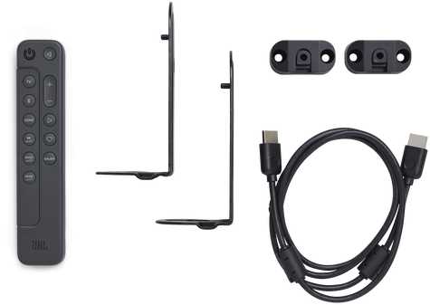 Комплект богатый: помимо саундбара, сабвуфера и тыловых колонок, в коробке находятся необходимые кабели, включая HDMI, два комплекта сетевых проводов (с разными вилками) и переходники для розеток. Также предоставляются крепления для настенного монтажа саундбара и заглушки для маскировки мест крепления, что добавляет эстетики. -