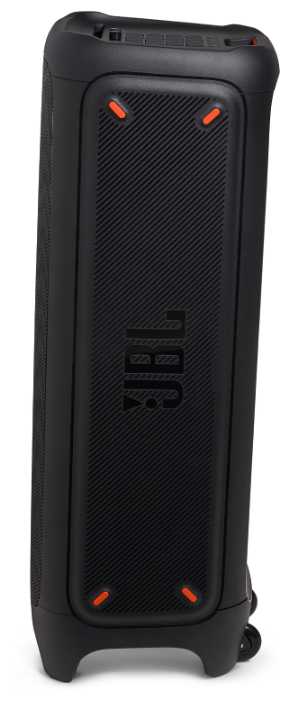 JBL PartyBox 300 — это специализированное решение для мероприятий, где важны громкость, басы и мобильность. Колонка демонстрирует впечатляющую мощность (до 100 дБ) и автономность, что делает её идеальной для вечеринок на открытом воздухе, пикников или небольших концертов. Инженеры JBL удачно реализовали аппаратную часть: два НЧ-динамика по 6,5 дюймов и три твитера обеспечивают плотное звуковое давление, а режим Bass Boost добавляет «пробивной» характер, особенно заметный в хип-хопе или EDM. При этом качество сборки на уровне: ABS-пластик, резиновые амортизаторы и металлическая решетка выдерживают частую транспортировку.