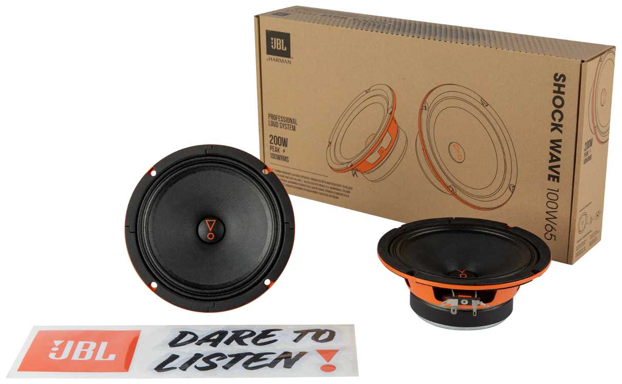 Комплектация : | - 2 динамика, - 4 уплотнительные прокладки, - инструкция по эксплуатации, - наклейка SHOCK WAVE, - наклейка JBL DARE TO LISTEN. |