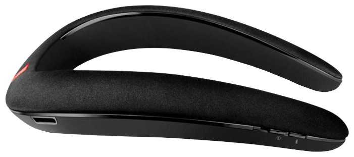 - + Очень удобная колонка для прослушивания музыки на велосипеде, можно поиграть в игры на компе с хорошим объемным звуком не сильно мешая окружающим. Басов, как всегда, хочется больше, но они есть и в общем неплохие, даже есть два фазоинвертора в районе затылка. Во время включения издает приятный рыкающий моторный звук. Кнопки управления расположены на внешней стороне а не со стороны шеи как у некоторых вариантов с алиэкспресса.